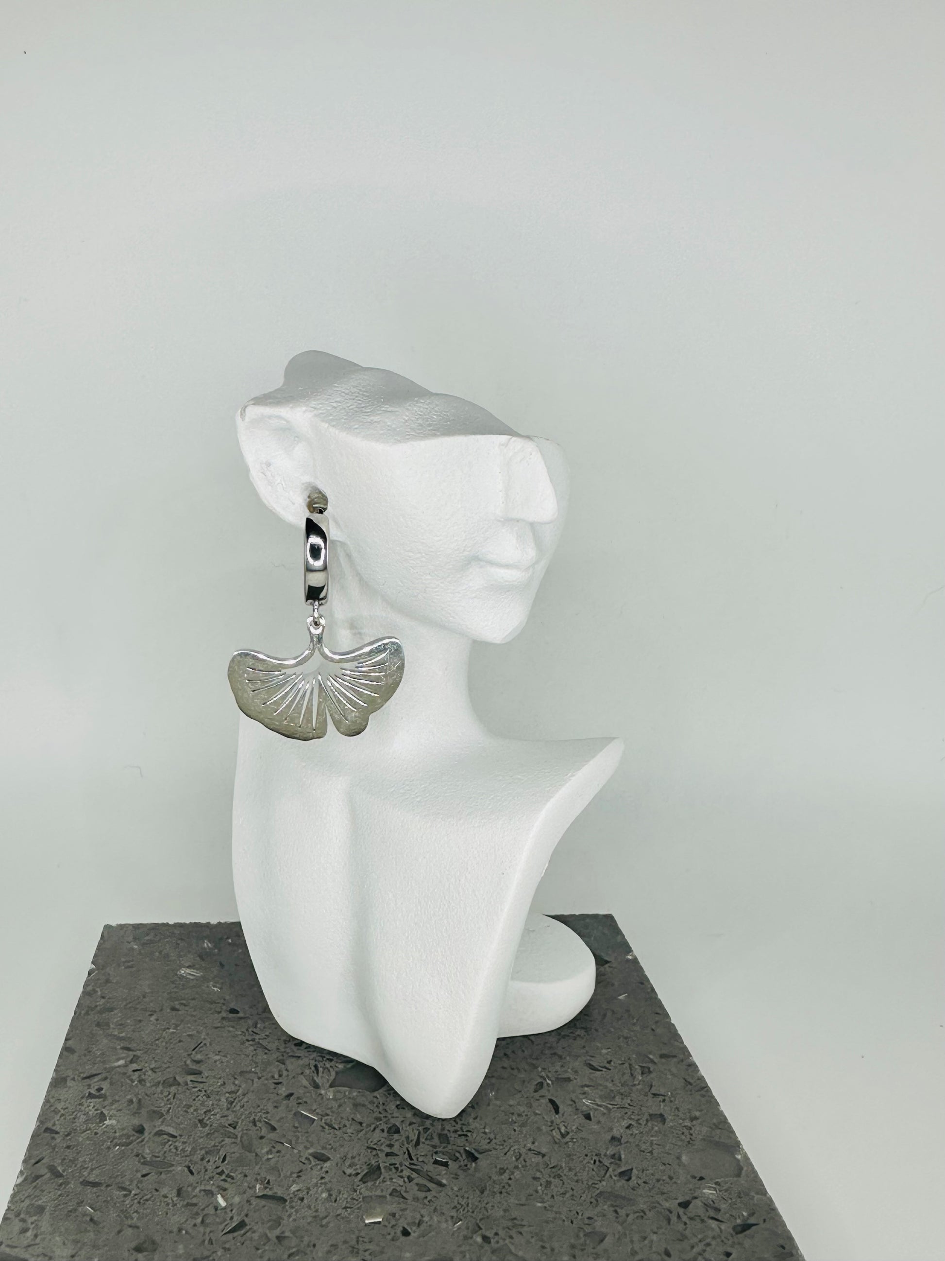 Stainless steel ginkgo leaf charms; anti-tarnish 18K gold or Platinum plated huggie hoops.